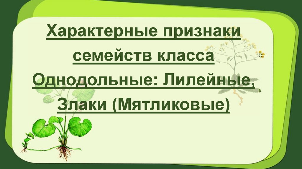 Характерные признакисемейств класса