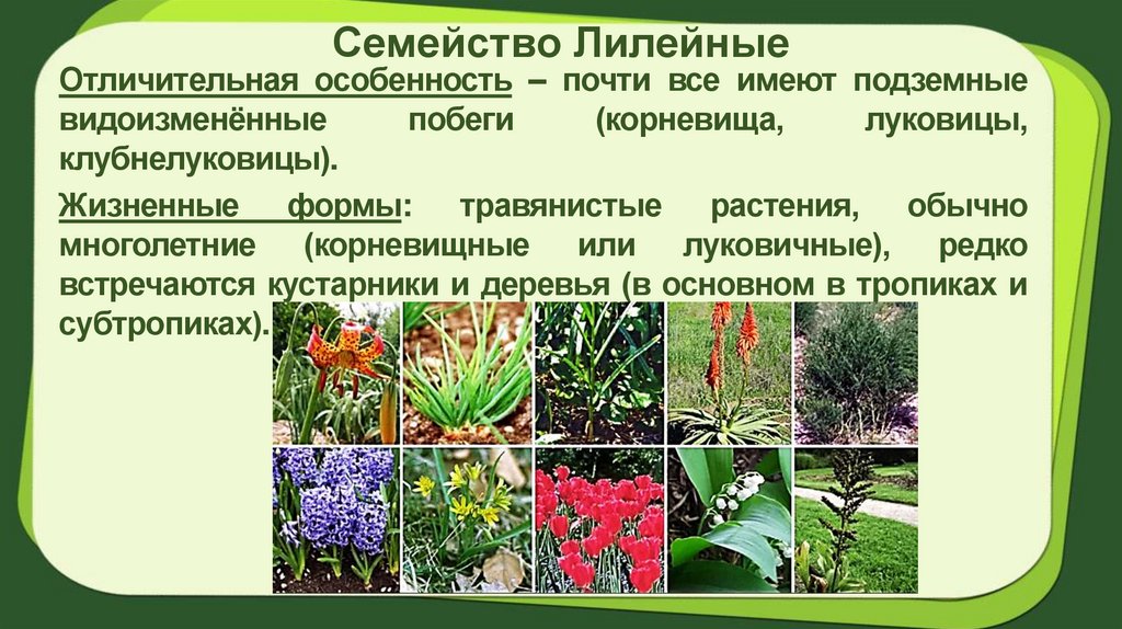 Семейство ЛилейныеОтличительная особенность – почти все имеют подземные