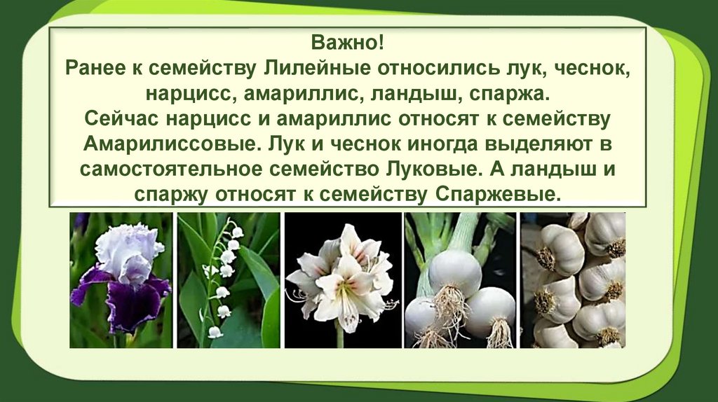 Важно!Ранее к семейству Лилейные относились лук, чеснок,