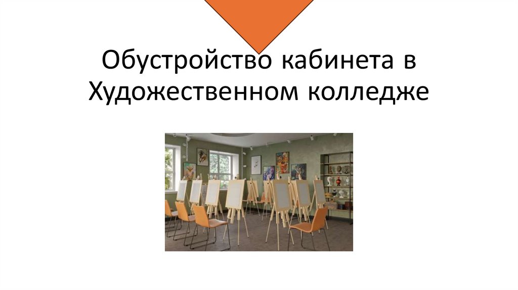 •Кабинет для занятий рисунком, живописью и композицией•Должен быть удобным, безопасным и соответствовать санитарноэпидемиологическим правилам и нормам (СанПиН)