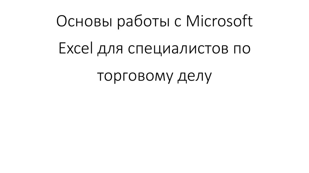 Основы работы с MicrosoftExcel для специалистов по