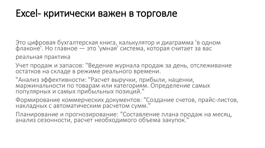 Excel- критически важен в торговлеЭто цифровая бухгалтерская книга, калькулятор и диаграмма 'в одном