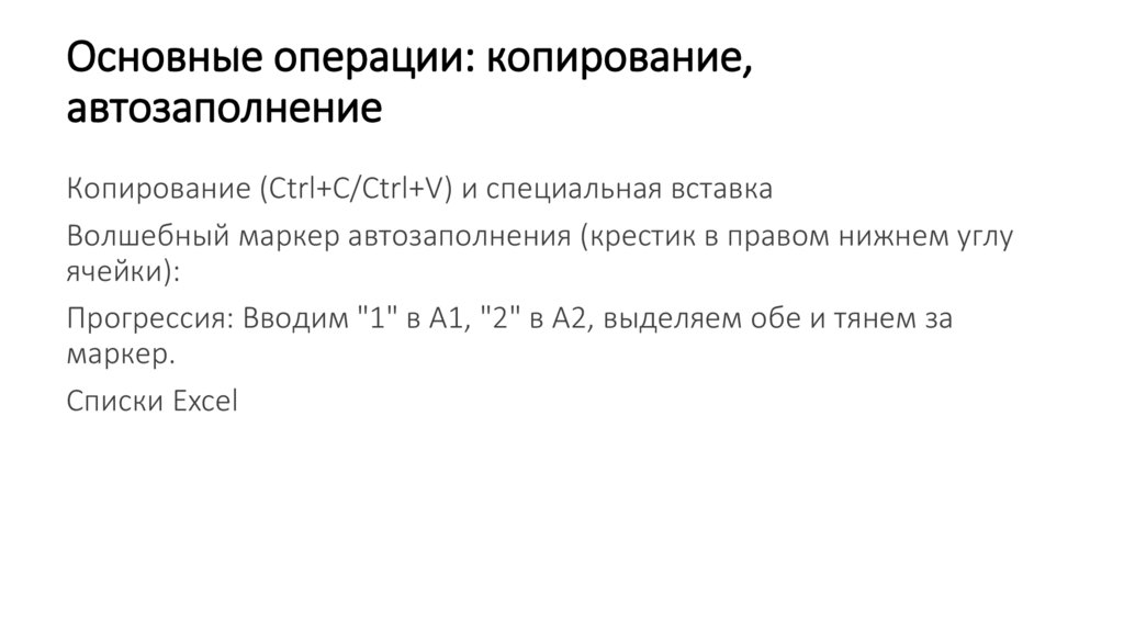 Основные операции: копирование,автозаполнение