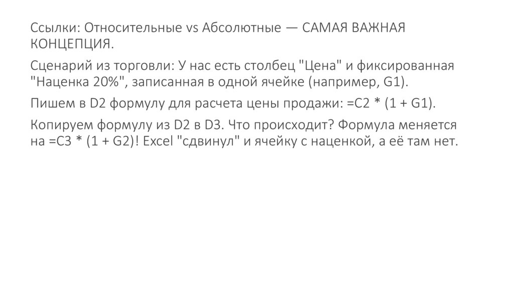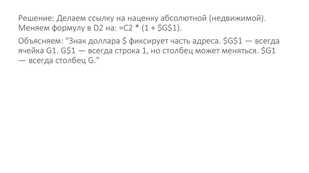 на =C3 * (1 + G2)! Excel "сдвинул" и ячейку с наценкой, а её там нет.