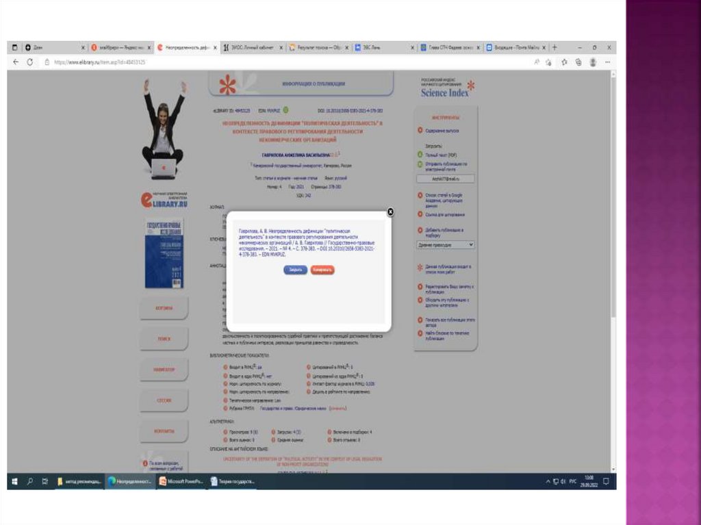 Наличие актуальных статей, опубликованных