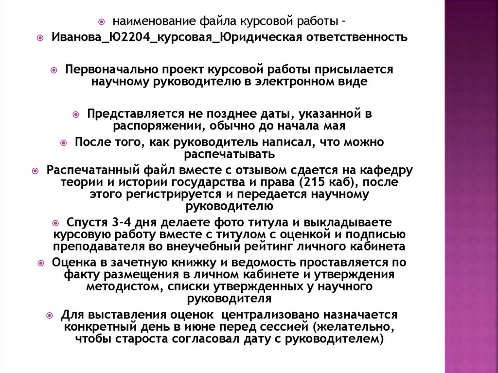 наименование файла курсовой работы –Иванова_Ю2204_курсовая_Юридическая ответственность