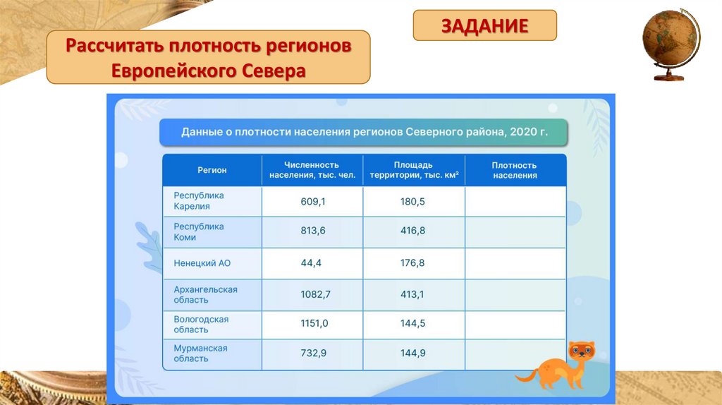 Плотность около 3 чел/км² (наибольшая в Вологодской и