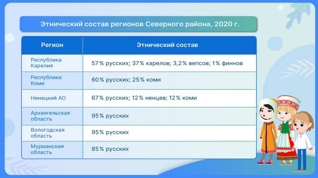 Население Европейского Севера составляет 4 млн. человек(3% населения России)