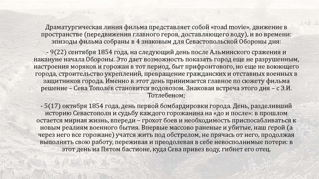 эпизоды фильма собраны в 4 знаковым для Севастопольской Обороны дня: