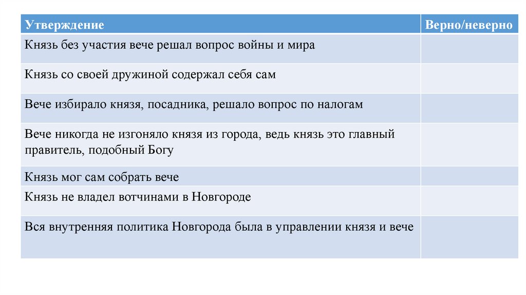 УтверждениеКнязь без участия вече решал вопрос войны и мира
