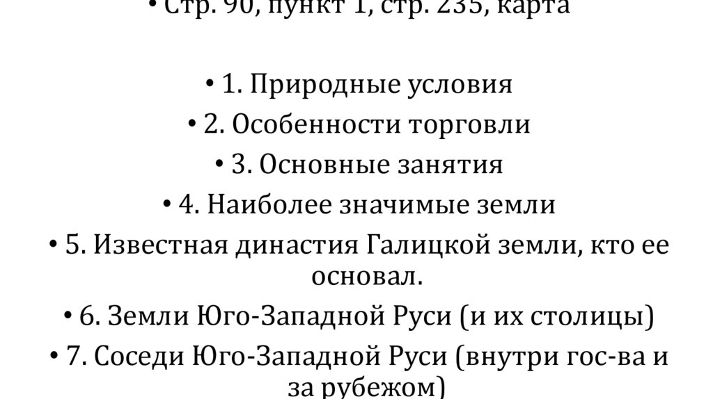• Стр. 90, пункт 1, стр. 235, карта• 1. Природные условия