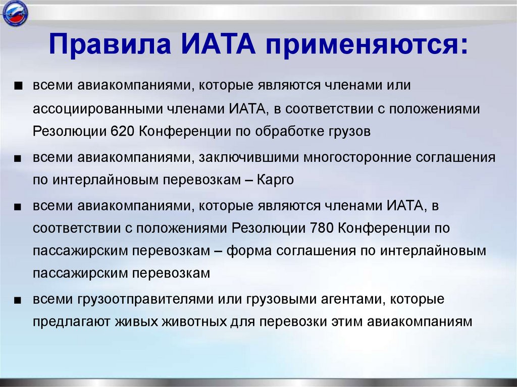 Правила ИАТА применяются:■ всеми авиакомпаниями, которые являются членами или