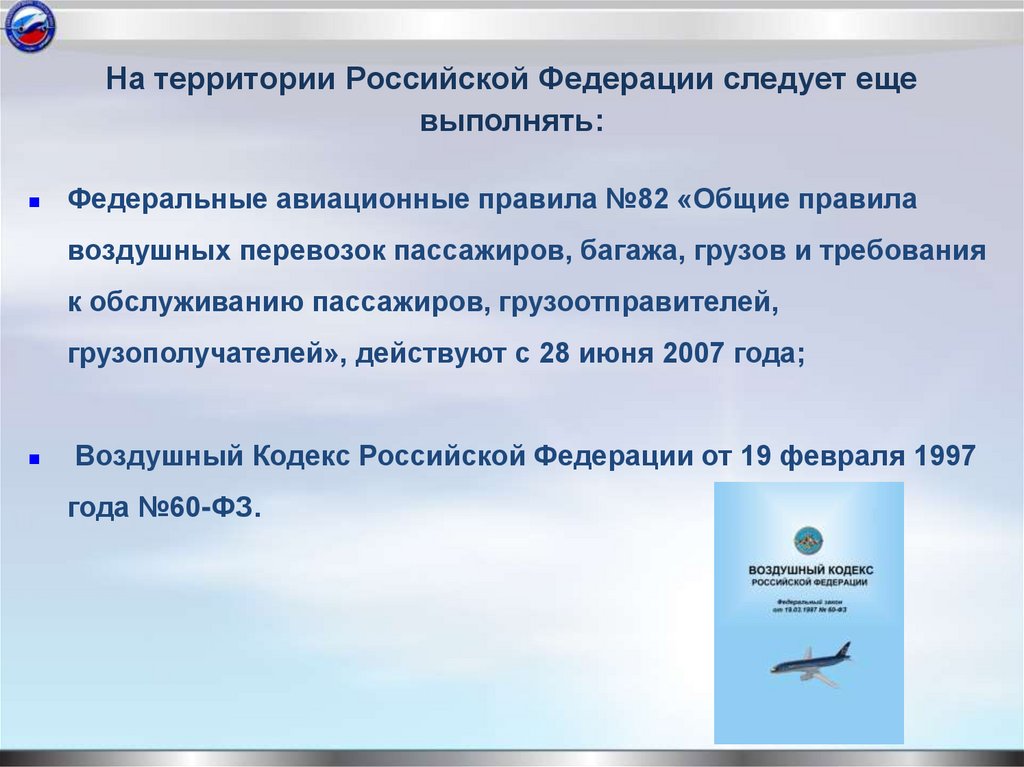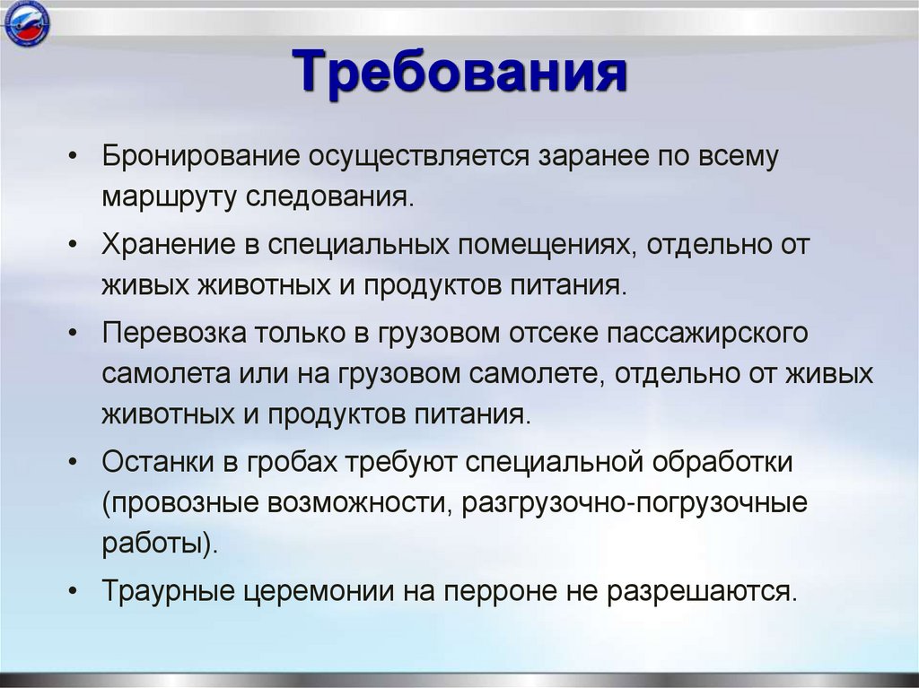 воздушных перевозок пассажиров, багажа, грузов и требования