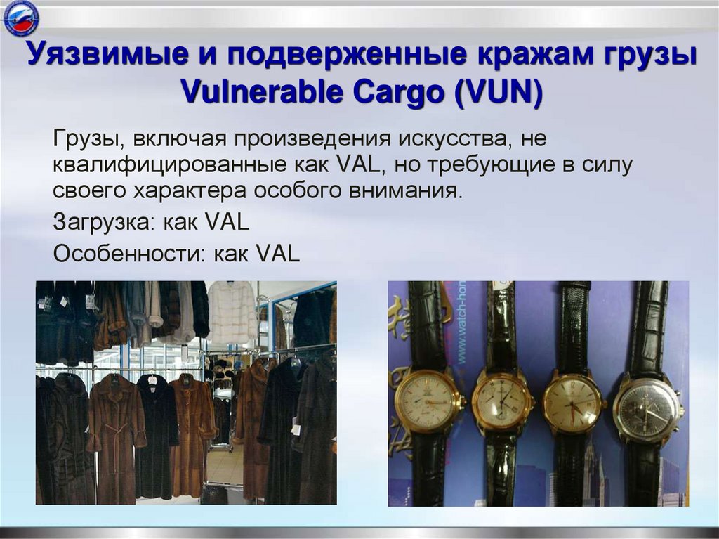 Уязвимые и подверженные кражам грузыVulnerable Cargo (VUN)