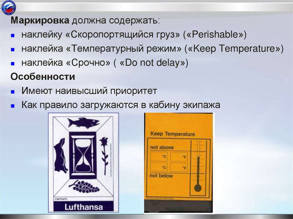 Маркировка должна содержать:наклейку «Скоропортящийся груз» («Perishable»)