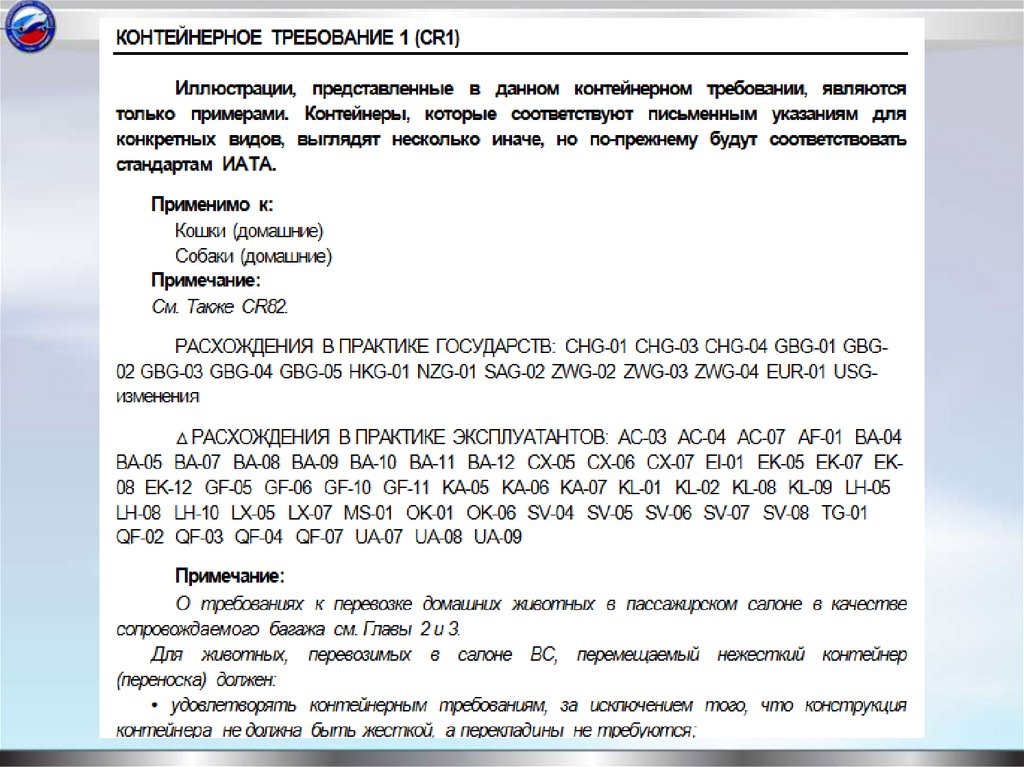 10. Международный справочник, в котором содержатся правила перевозки живых животных воздушным транспортом