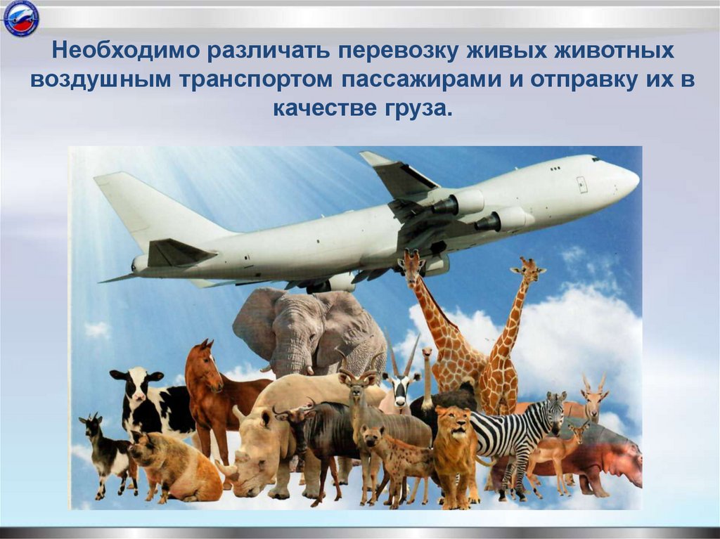 Необходимо различать перевозку живых животныхвоздушным транспортом пассажирами и отправку их в