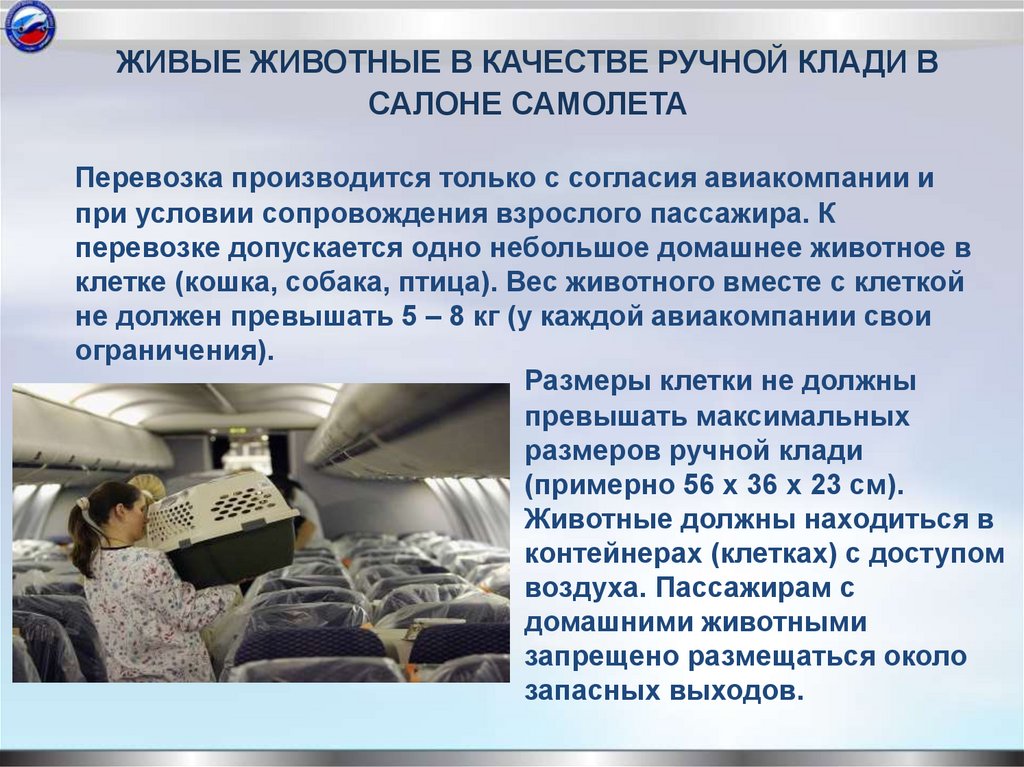 ЖИВЫЕ ЖИВОТНЫЕ В КАЧЕСТВЕ РУЧНОЙ КЛАДИ ВСАЛОНЕ САМОЛЕТА