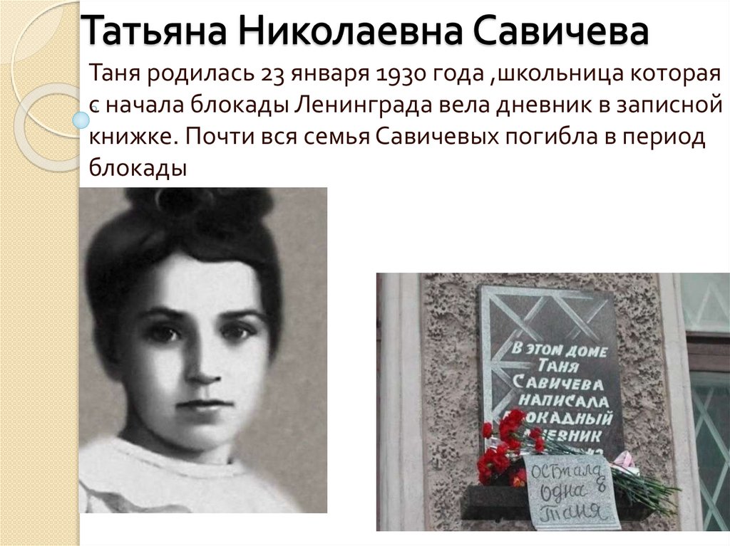 Таня родилась 23 января 1930 года ,школьница котораяс начала блокады Ленинграда вела дневник в записной