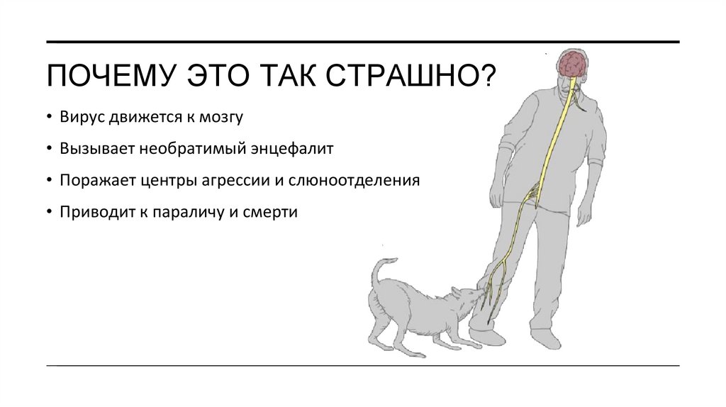 ПОЧЕМУ ЭТО ТАК СТРАШНО?• Вирус движется к мозгу