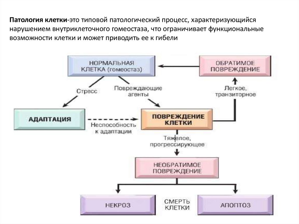Патология клетки-это типовой патологический процесс, характеризующийсянарушением внутриклеточного гомеостаза, что ограничивает функциональные