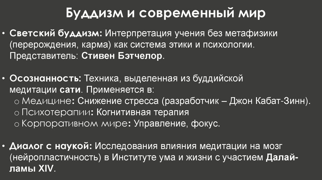 Буддизм и современный мир• Светский буддизм: Интерпретация учения без метафизики