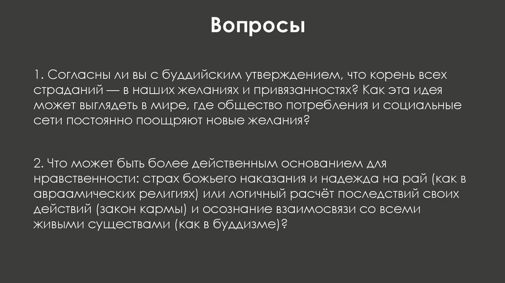 Вопросы1. Согласны ли вы с буддийским утверждением, что корень всех