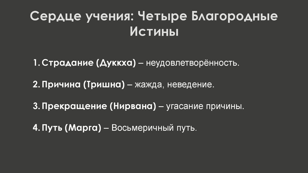 1. Страдание (Дуккха) – неудовлетворённость.
