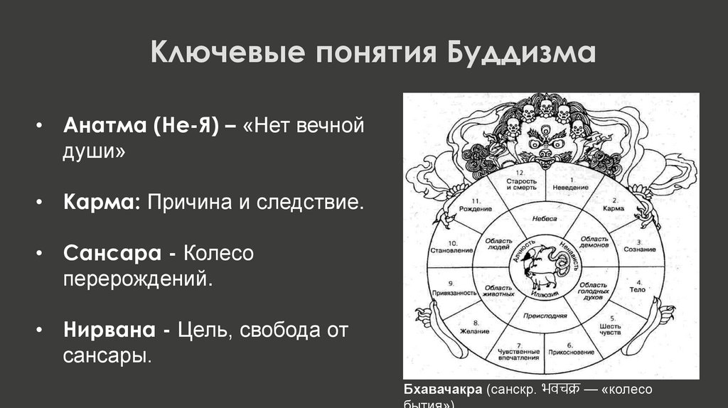 Ключевые понятия Буддизма• Анатма (Не-Я) – «Нет вечной