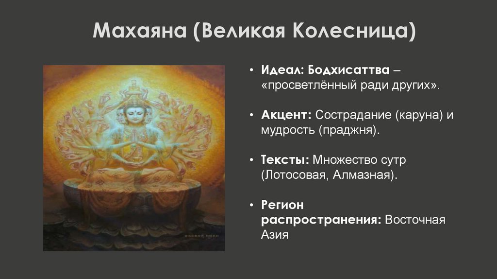 Махаяна (Великая Колесница)• Идеал: Бодхисаттва –