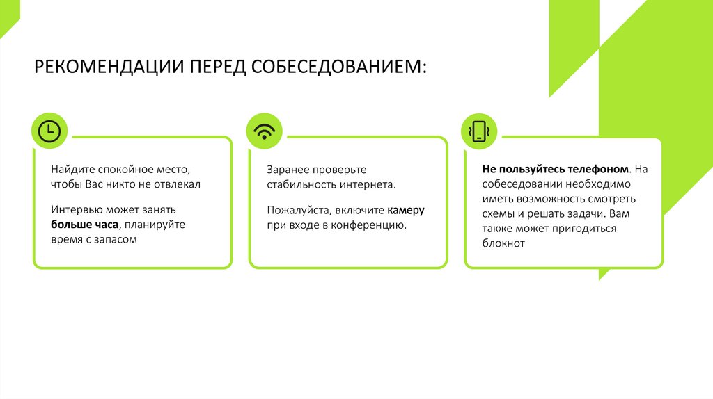 РЕКОМЕНДАЦИИ ПЕРЕД СОБЕСЕДОВАНИЕМ:Найдите спокойное место,