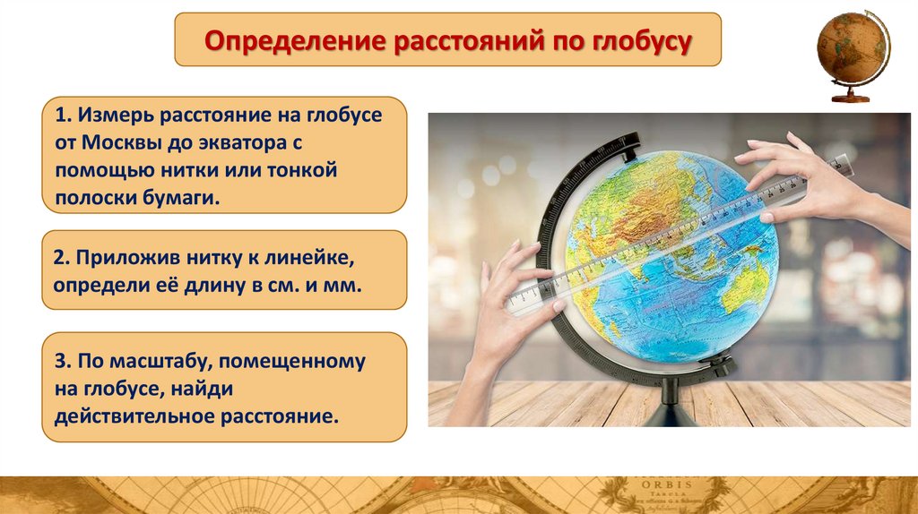 Определение расстояний по глобусу1. Измерь расстояние на глобусе