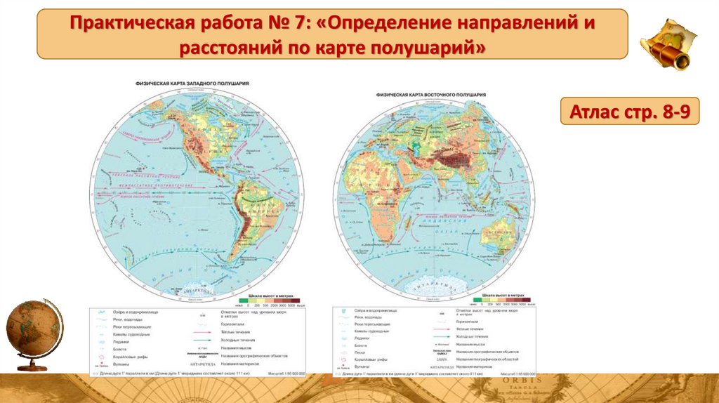 Практическая работа № 7: «Определение направлений ирасстояний по карте полушарий»