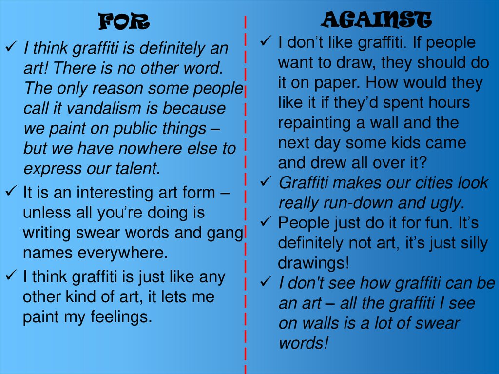 I don’t like graffiti. If people