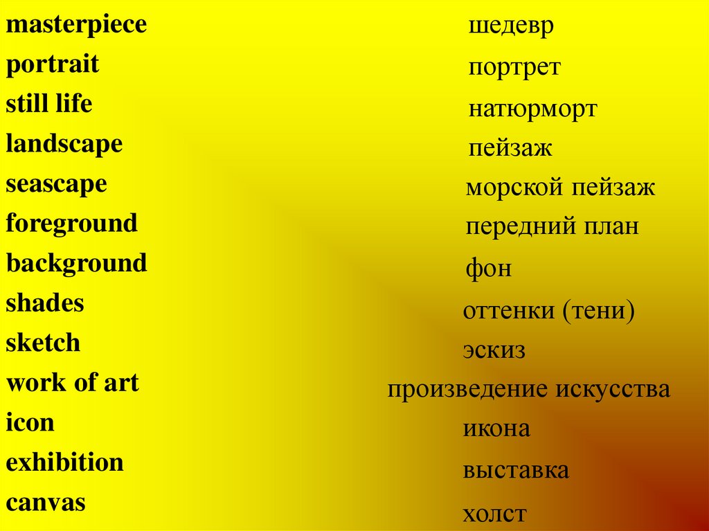 • colours, shades, techniques