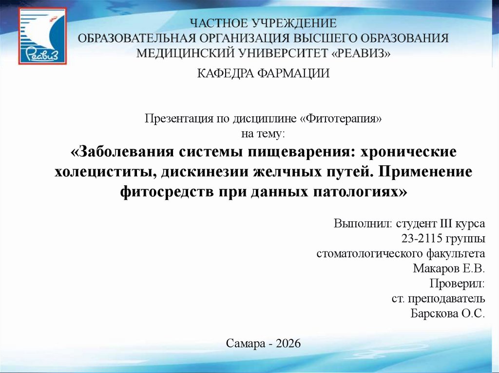 КАФЕДРА ФАРМАЦИИПрезентация по дисциплине «Фитотерапия»