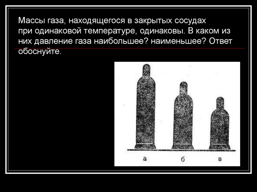 Массы газа, находящегося в закрытых сосудахпри одинаковой температуре, одинаковы. В каком из