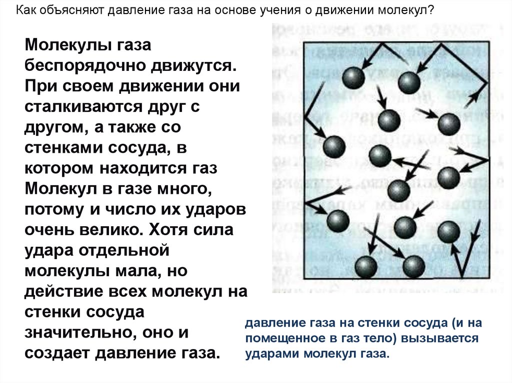 Как объясняют давление газа на основе учения о движении молекул?Молекулы газа