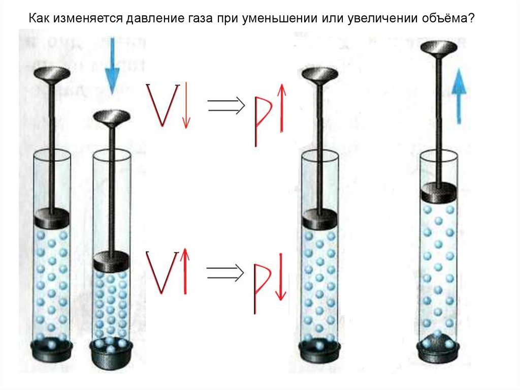 Как изменяется давление газа при уменьшении или увеличении объёма?7.