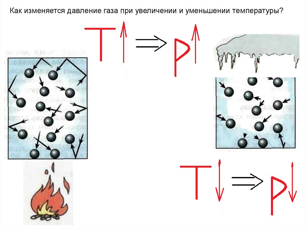 Как изменяется давление газа при увеличении и уменьшении температуры?8.