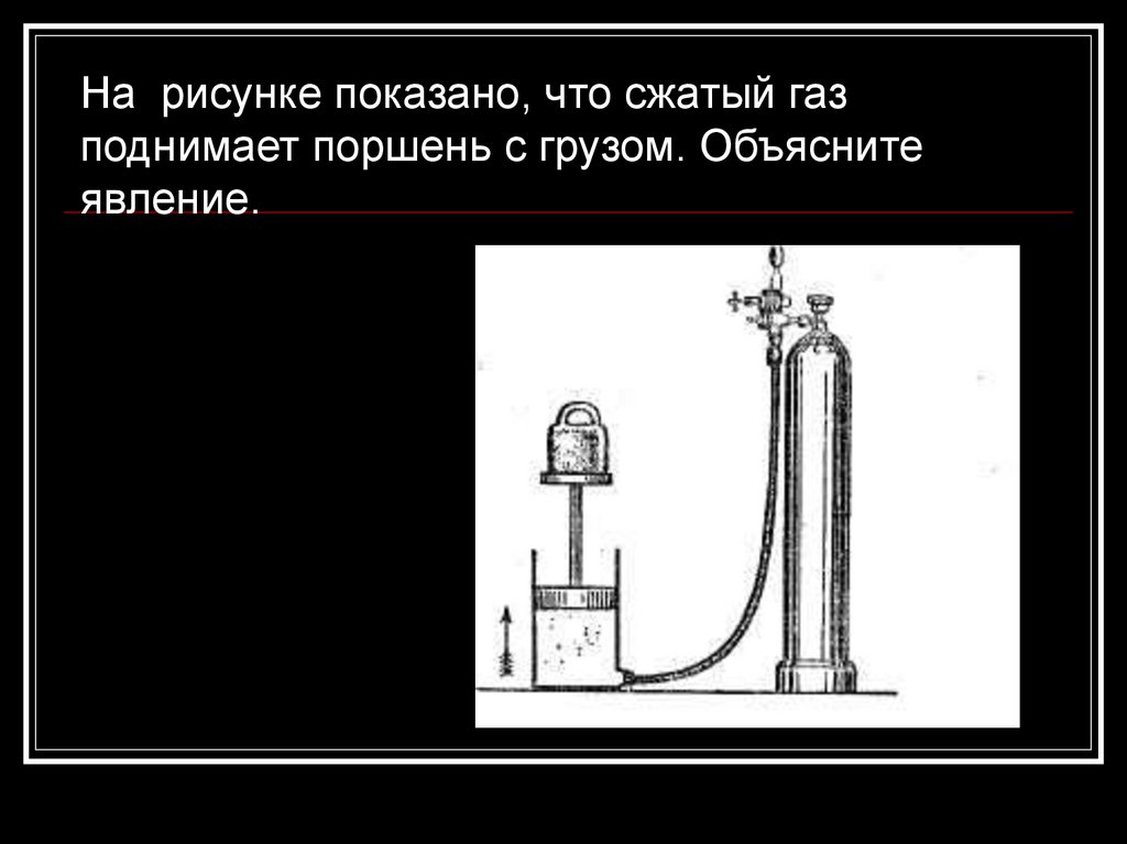 На рисунке показано, что сжатый газподнимает поршень с грузом. Объясните