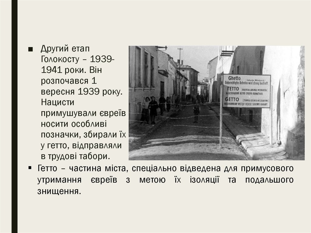 ■ Другий етапГолокосту – 19391941 роки. Він