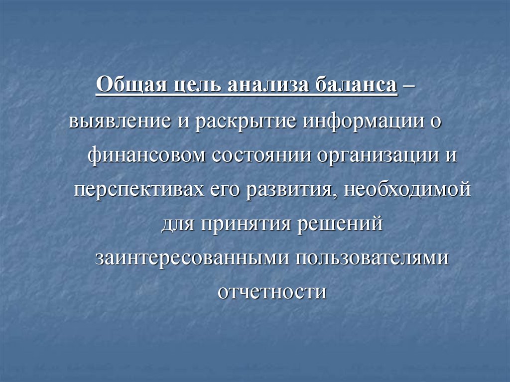 Общая цель анализа баланса –выявление и раскрытие информации о