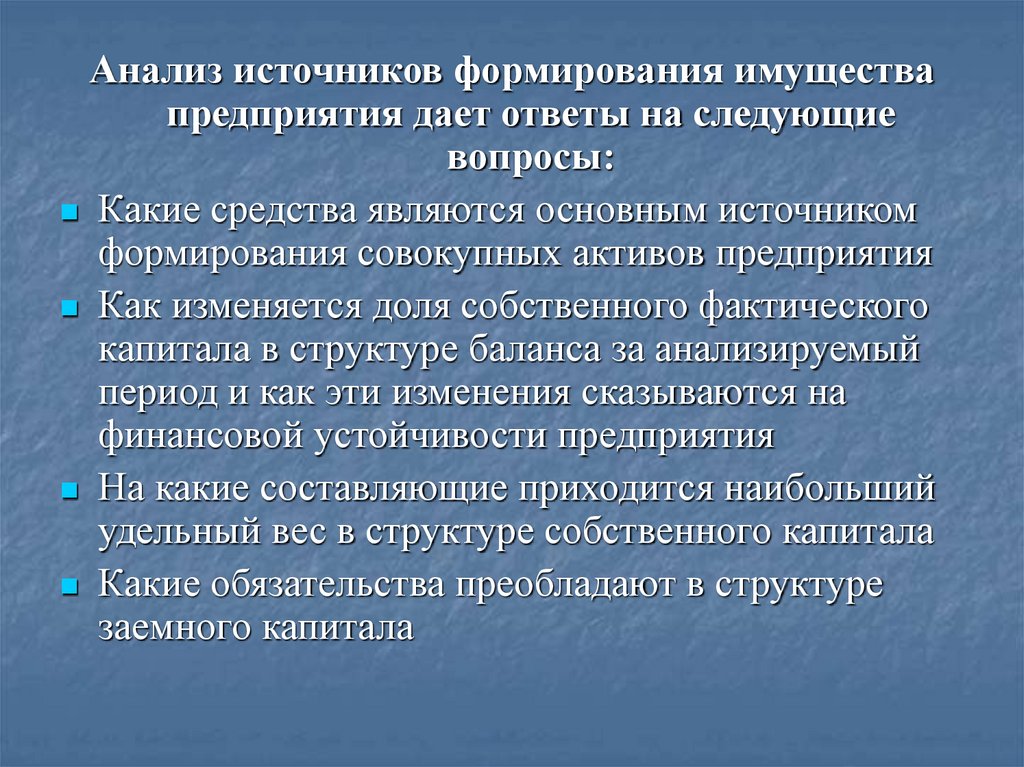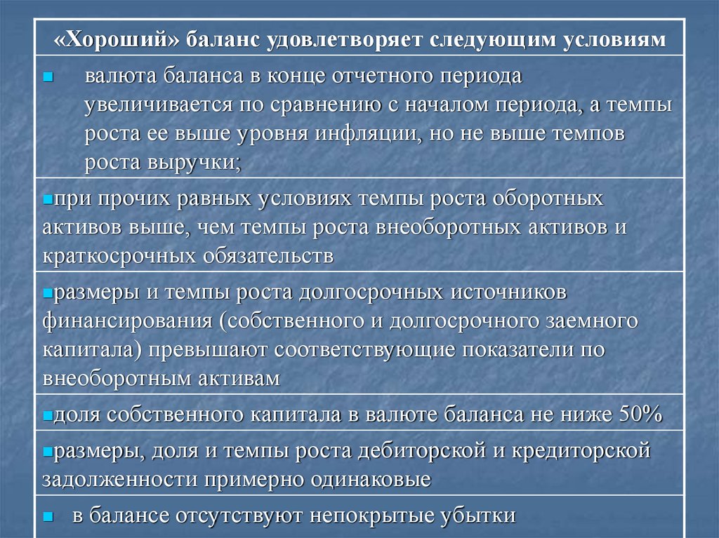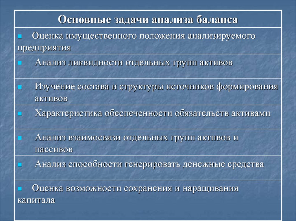 Основные задачи анализа балансаОценка имущественного положения анализируемого