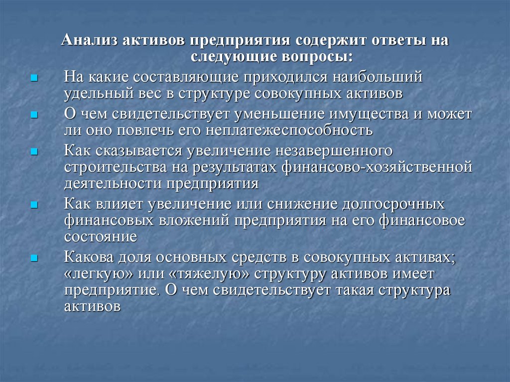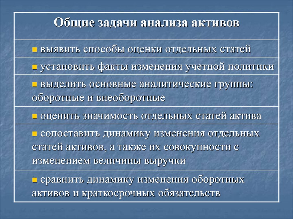 Общие задачи анализа активоввыявить способы оценки отдельных статей