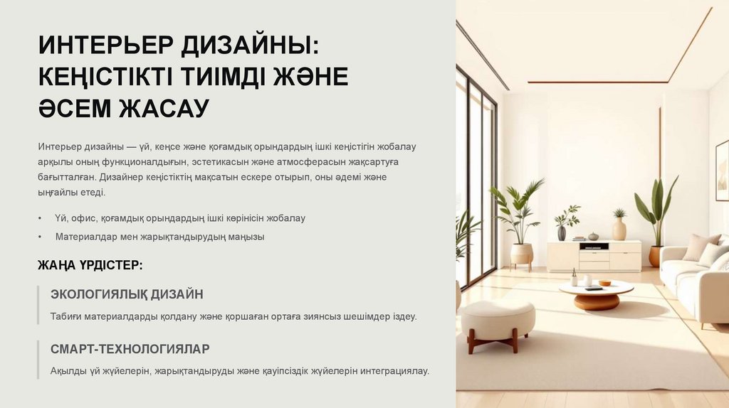 ИНТЕРЬЕР ДИЗАЙНЫ:КЕҢІСТІКТІ ТИІМДІ ЖӘНЕ