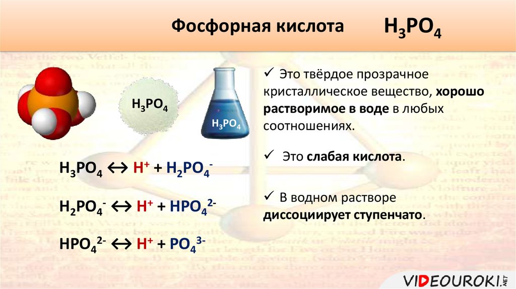 Фосфорная кислота – трёхосновная кислота, которая образует три вида