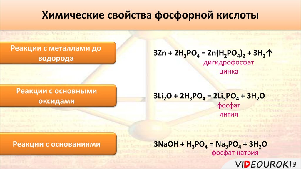 Химические свойства фосфорной кислотыРеакции с металлами до