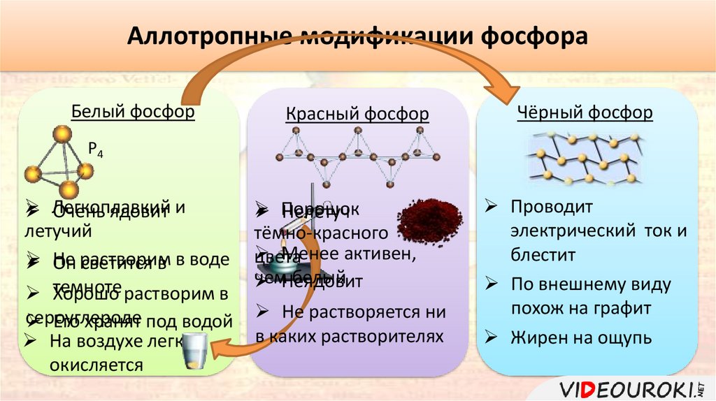 Фосфор образует несколько аллотропных модификаций: белый, красный
