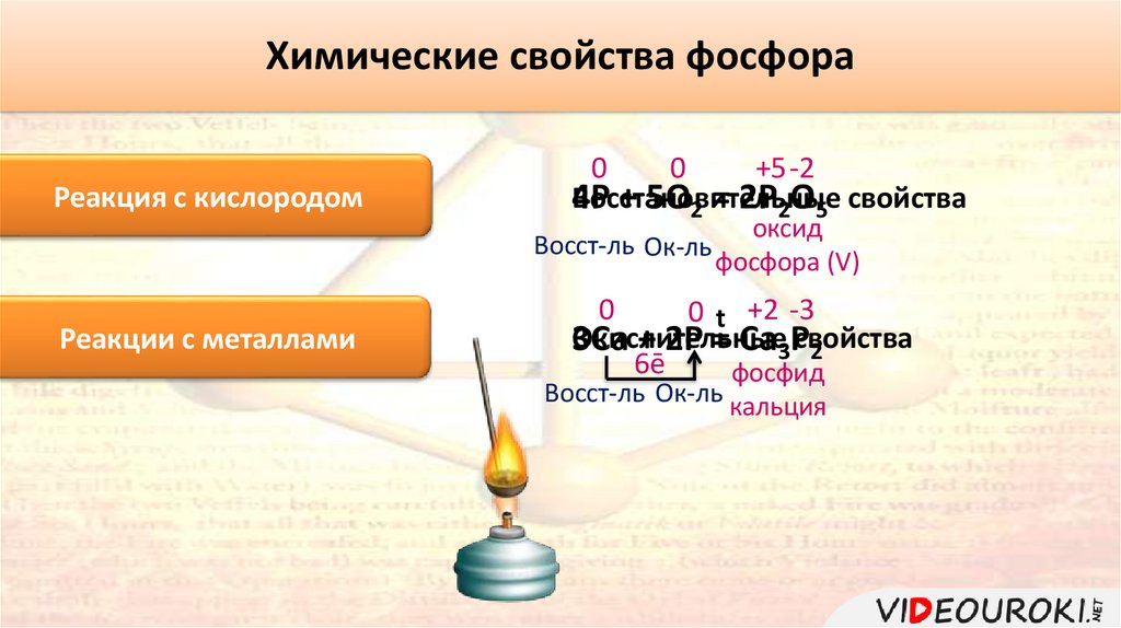 В реакциях с металлами фосфор проявляет окислительные свойства, а в